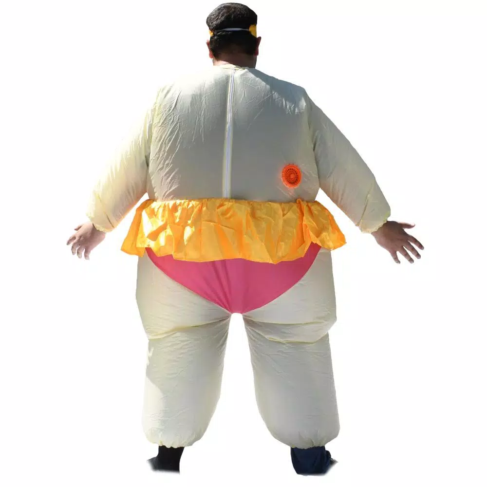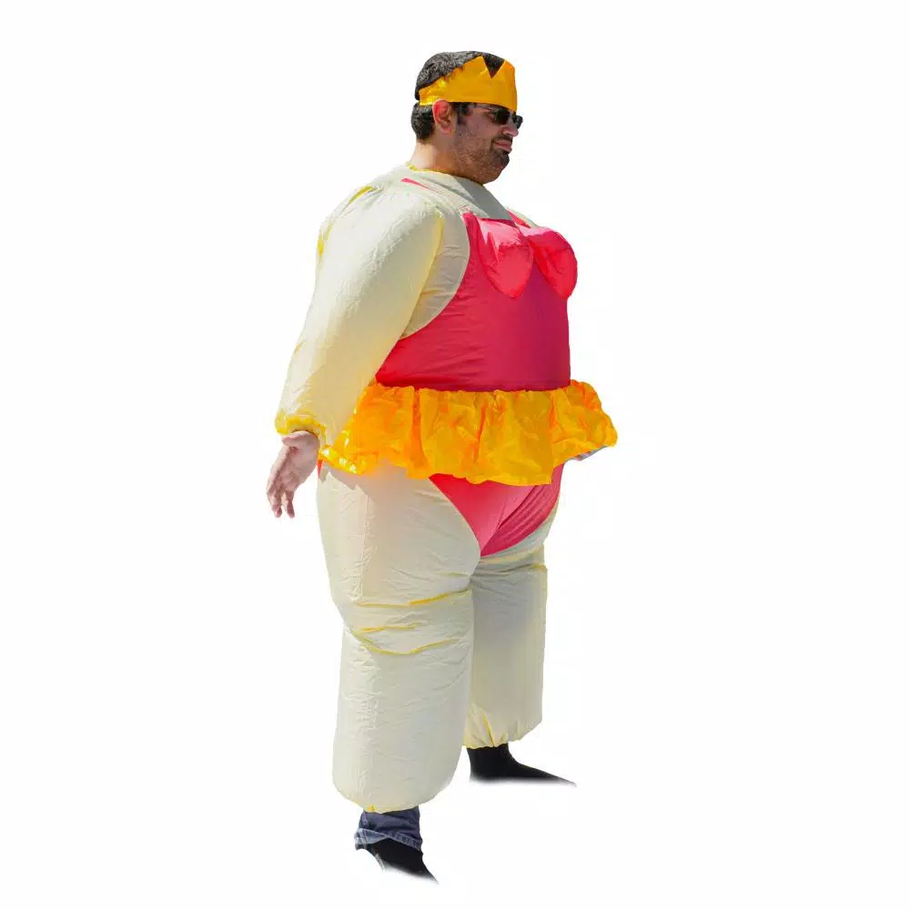 - Includes: inflatable Ballerina costume, yellow crown, battery-operated fan, and battery box