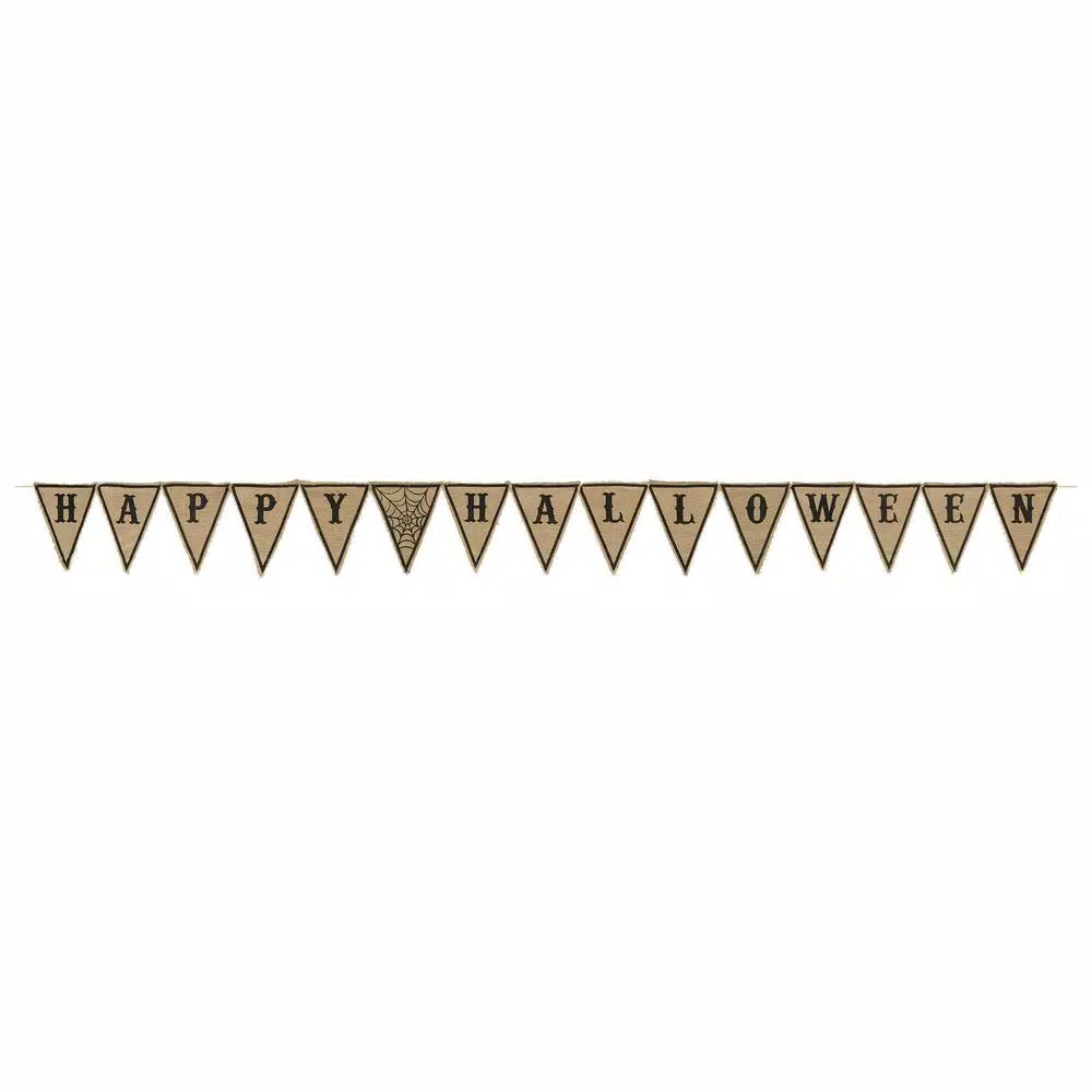 Itβs the most wonderful time of the year-Halloween. Throw a party full of your favorite ghouls and goblins and decorate with this Happy Halloween Burlap Banner. This modern banner reads Happy Halloween on individual pennant flags. Hang this fun garland where all your guests can see.