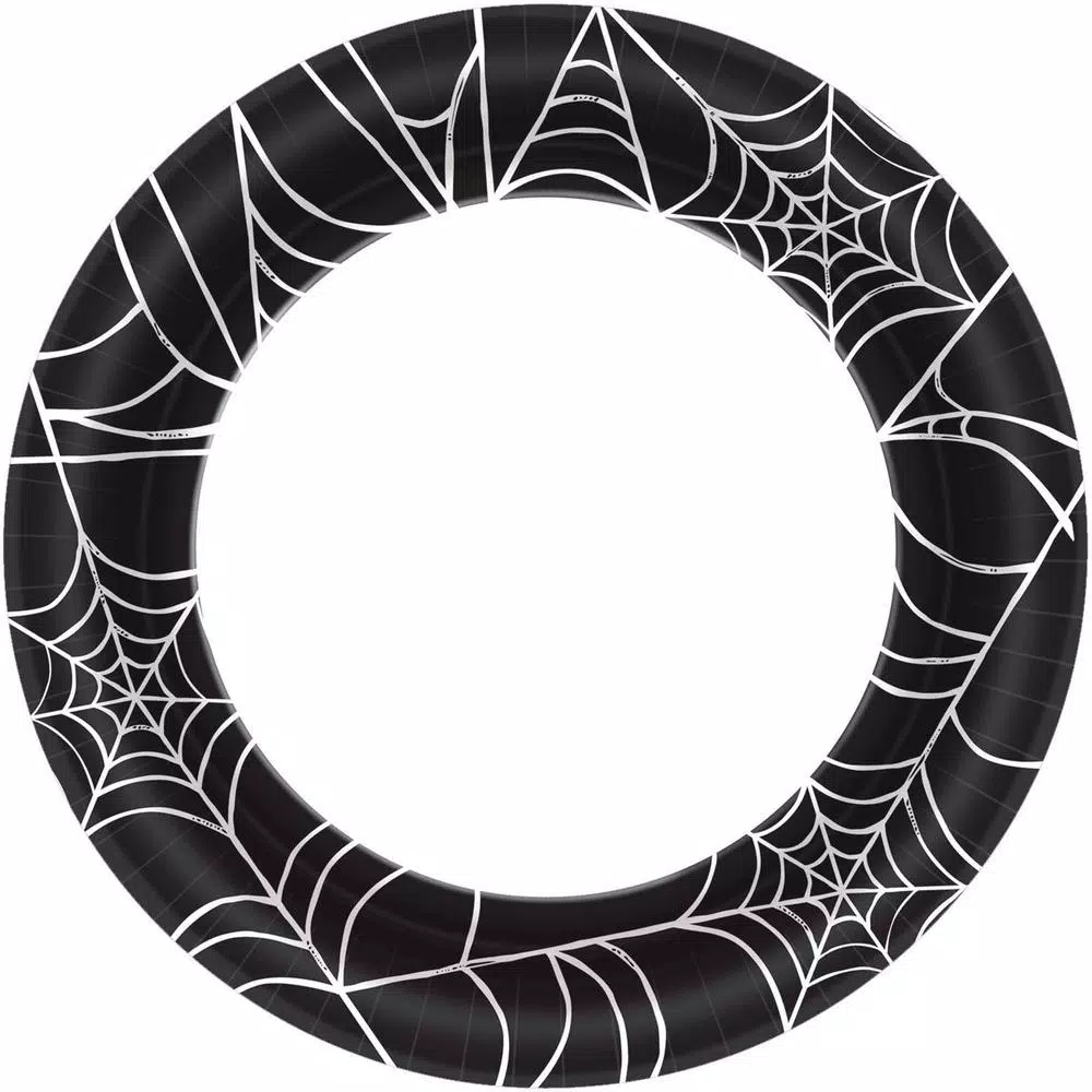 Gather friends and family together and celebrate with Amscanβs Spider Web 10 in. x 10 in. paper plates. They are the perfect size for your next Halloween event. These paper plates have a curved edge and extra-deep recess making them more durable and additional room for your treats. Features a white center and a black rim, decorated with a white spider web pattern. Each pack contains 40 dinner plates.