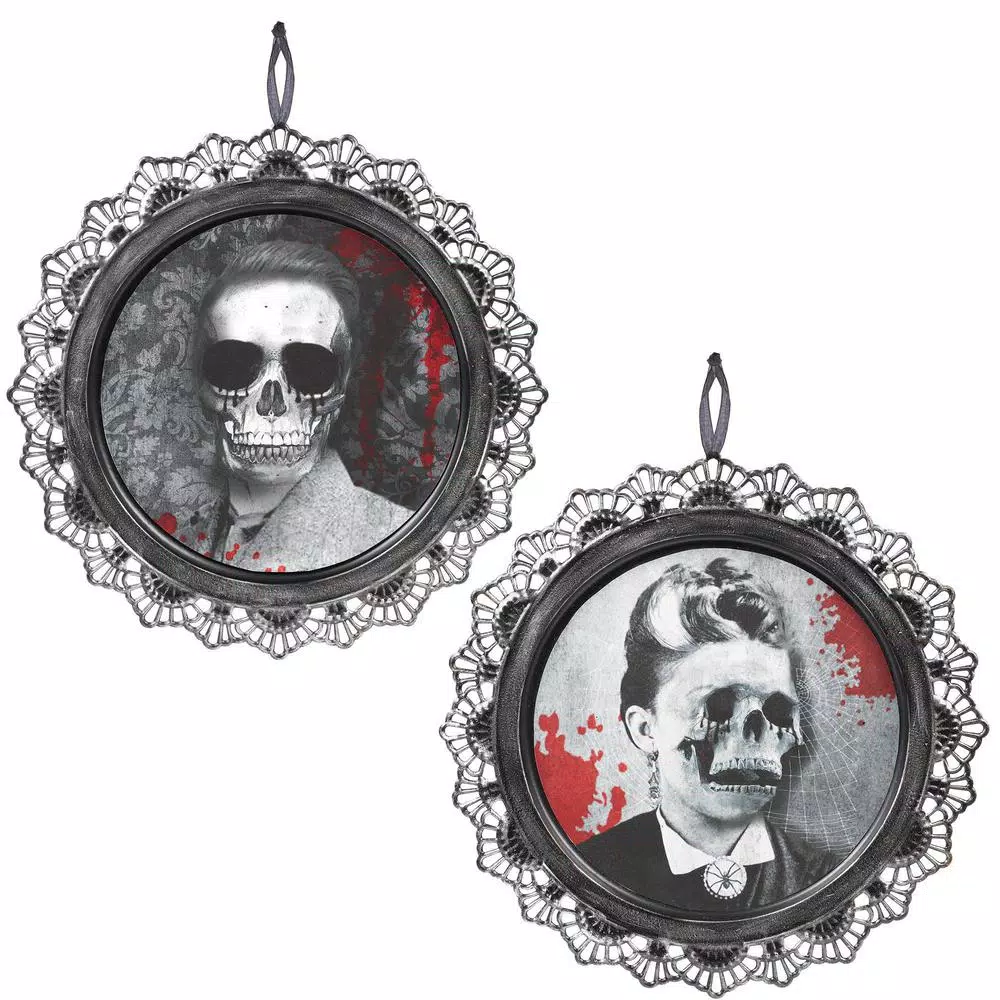 If youβre going to have a terrifying monster mash youβre going to want to line the halls with our Portrait Signs. Each pack comes with 2 different blood splattered skull pictures. Use the attached ribbon to hang these signs indoors or out.