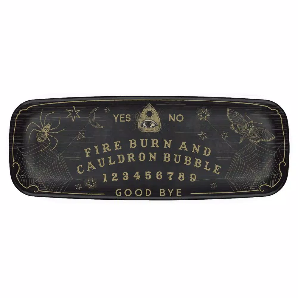 Tricks and treats and spooks and spells, our unique platter can help transform your table. This creative platter looks just like a Ouija board but instead of the alphabet spells out Fire Burn and Cauldron Bubble in fun lettering. Even the dead will want to tell you how much they like this platter.
