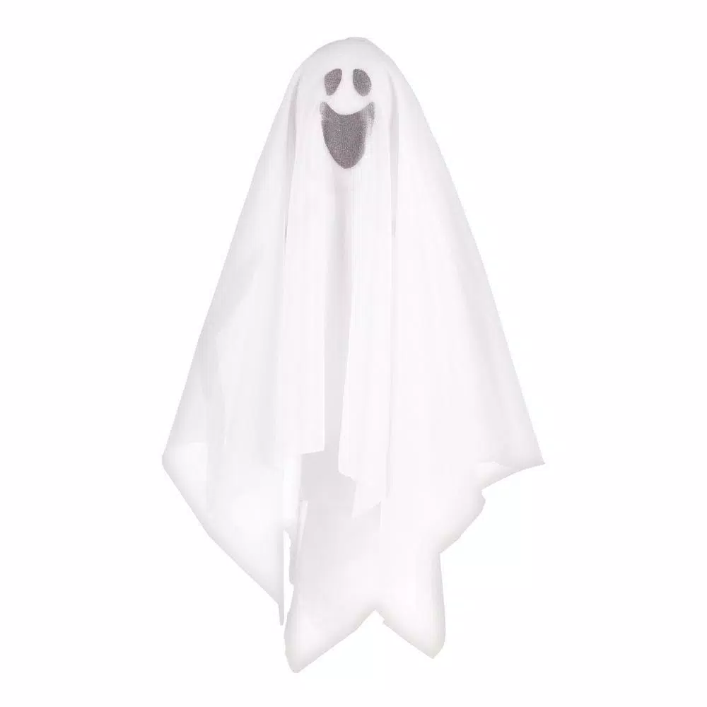 Boo. Our Hanging Ghost probably wonβt frighten anyone this Halloween season. This cute ghost features a white drape and smiling face. Use the included loop to hang this decoration anywhere, indoors or out.