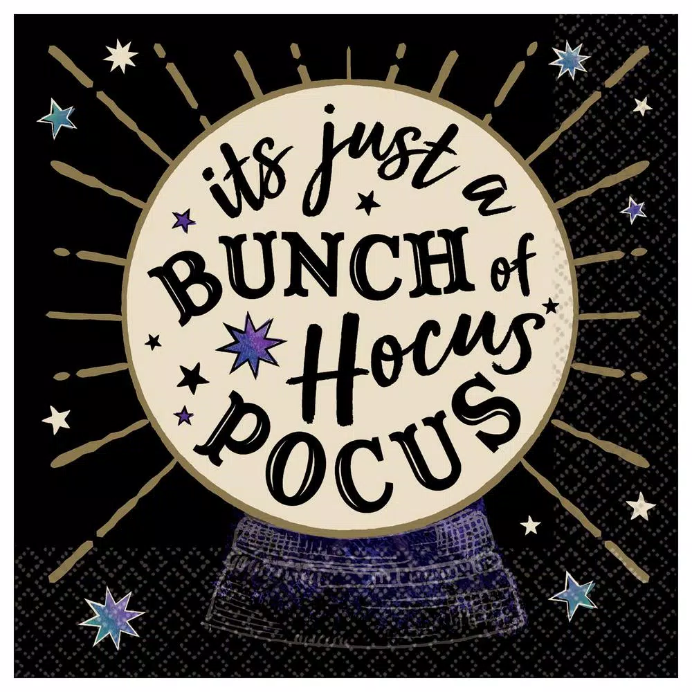 Tricks and treats and spooks and spells, our unique napkins can help transform your table. Each napkin features a crystal ball with a, Its Just a Bunch of Hocus Pocus message. These napkins are great for cleaning up accidental potion spills.