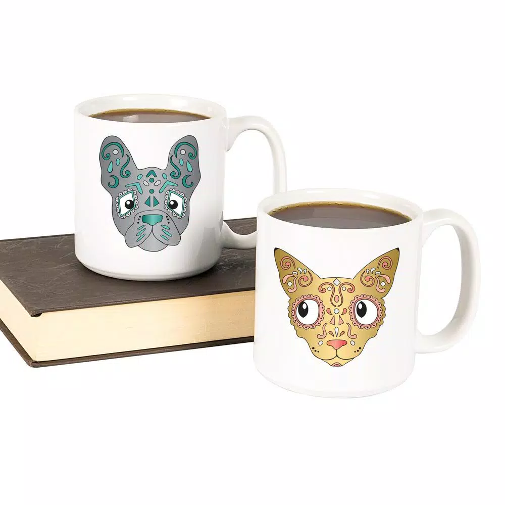 Inspired by the traditional design, the Sugar Skull Pet Coffee Mugs are ideal for those who love both culture and animals. This white coffee mug features a pair of decorative sugar skulls, a wide handle and holds up to 20 oz. of your favorite coffee or tea. A great gift for any season, this mug set will have you sharing more than just morning coffee together.