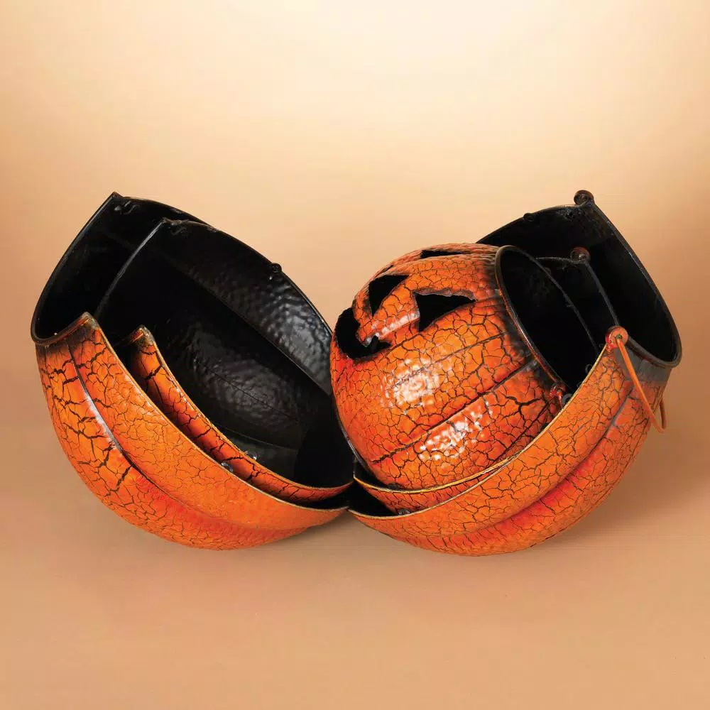 - Warm orange, these fun pumpkins have been given a crackle antiqued finish, an elegant touch to your Halloween decor