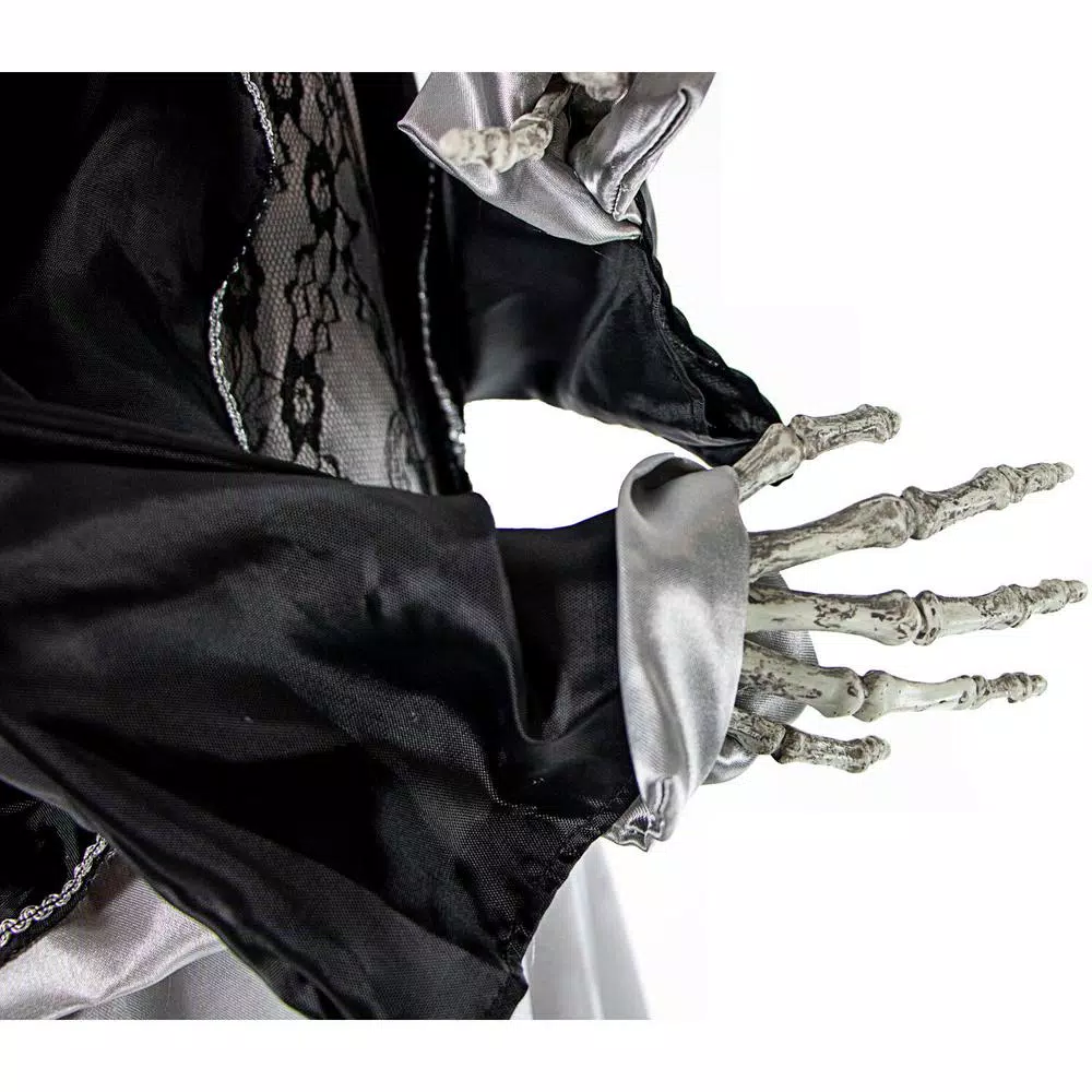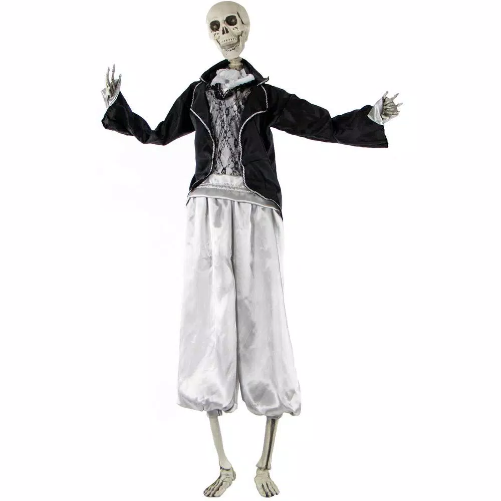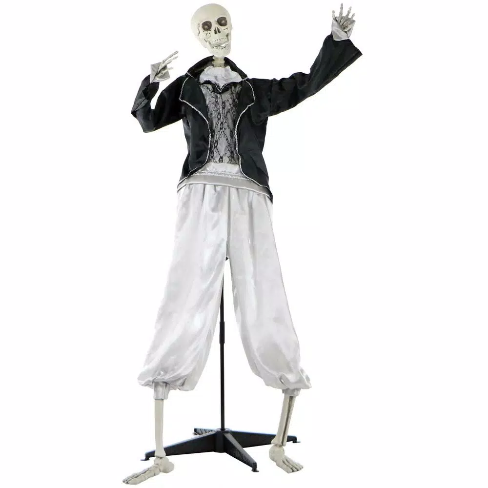 Enter, if you dare, into the horrifying world of Haunted Hill Farm. Our life-size, animated creepy creatures are just what you need to turn your home into the scariest haunted house on the block. Our wide choice of monsters, each more nerve-wracking than the last, is sure to create a hair-raising cast for the creepiest display you can imagine. Our Talking Skeleton Groom looks ghoulishly dapper in his satin tux and tails with a ruffled cravat. His flashing white eyes and sinister voice will startle even your most stoic visitors as he welcomes them to his morbid celebration. โEnjoy yourselves! It will be your last chance! Muahahaha!โ Pair him with our Skeleton Bride (sold separately) for spine-tingling wedded bliss. For thrills and chills so frightening your neighbors will run shrieking in horrendous delight, count on Halloween decorations from Haunted Hill Farm.