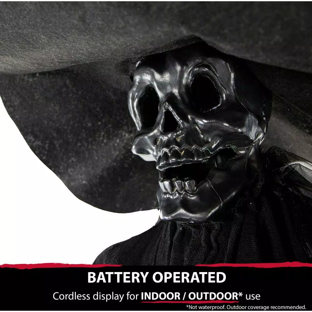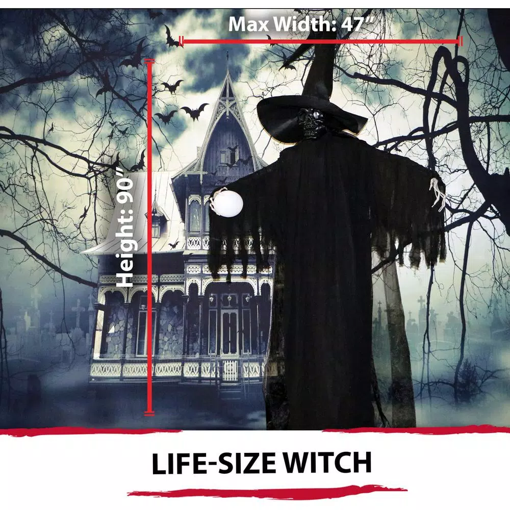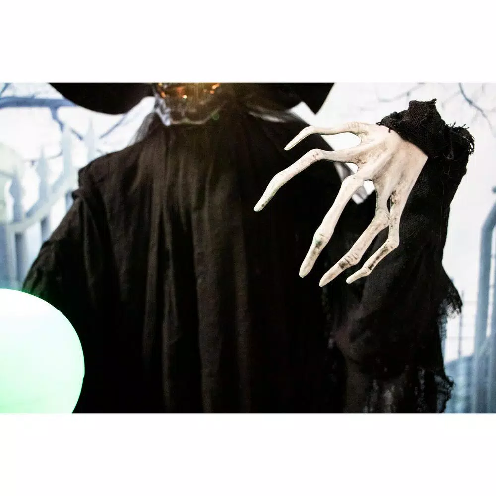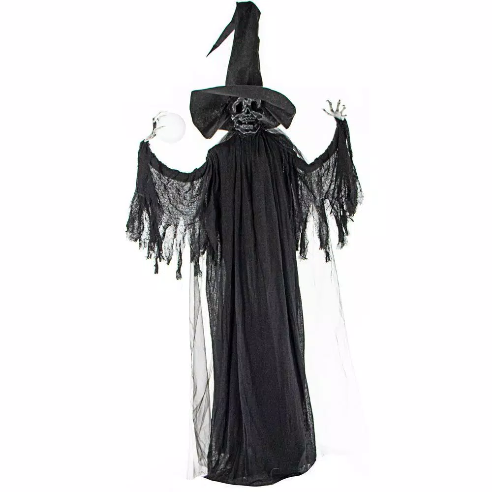 - ANIMATED PHANTOM WITCH: Multi-color crystal ball lights up with strobe effect (can be operated with or without skull lights). Skull lights up with a multi-color strobe light (can be operated with or without crystal ball lights).