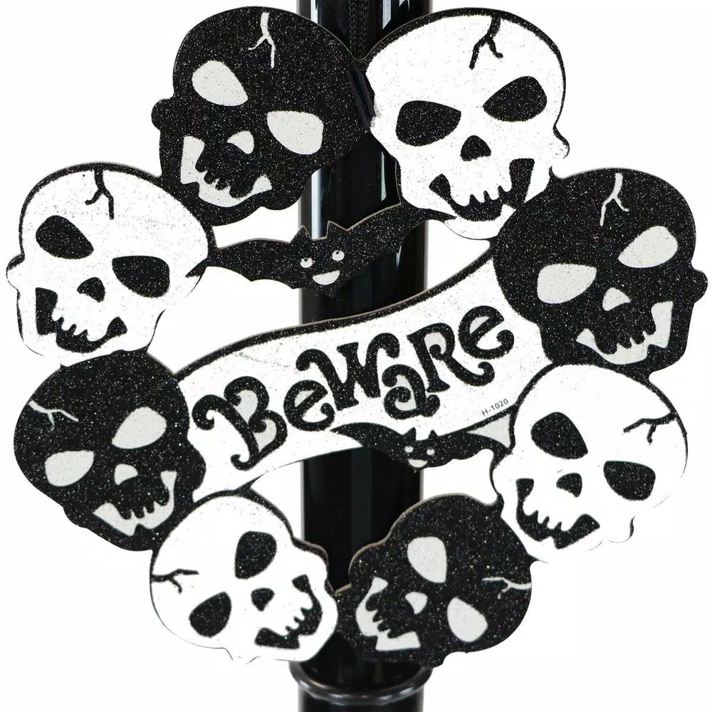 Awaken the spirit of Halloween with this unique musical lamp post from Haunted Hill Farm. You and your guests will be spellbound as orange beads cascade over a wicked witch scene. White LED lights illuminate the flurry of polyfoam beads as spine-chilling music plays along. Scary directional signs decorate the post and add to the fun. Place it on your porch, walkway, driveway or anywhere else in your yard to create a 1-of-a-kind bewitching display everyone will love. For thrilling spooky fun this Halloween season, count on quality products from Haunted Hill Farm.