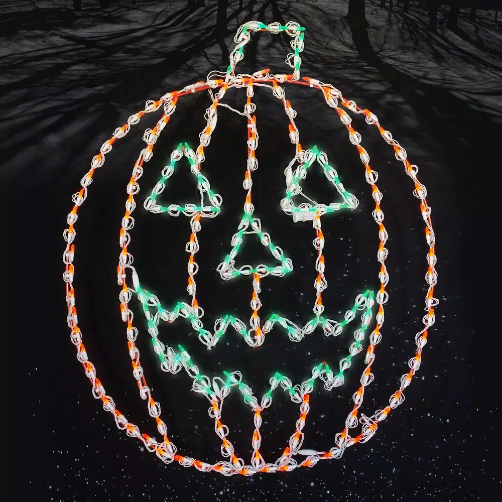 Lighted LED Jack-O-Lantern for indoor and outdoor Halloween decorating. This classic display will light the path for all your Halloween guests. With itsβ welcoming face, it will surely carve itsβ way as a festive favorite. Commercial-grade lights on a steel frame, durable outside Y-Stakes not included for ground installation. Must be purchased separately.