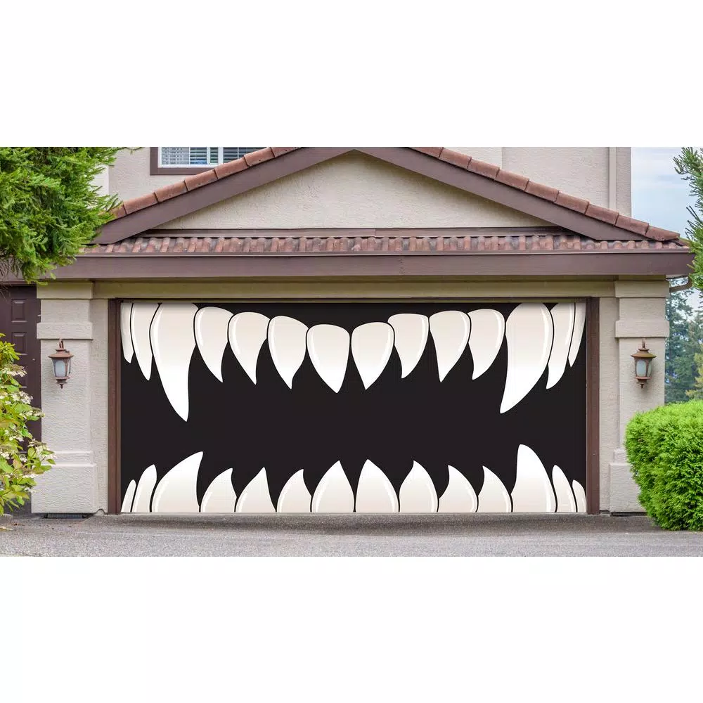 Halloween Garage Door Banner Mural Sign decor 7 ft. x 16 ft. Car Garage – The Original Holiday Garage Door Banner Decor by My Door Decor, makers of My Door Decor. Proprietary components for easy assembly, allowing door to open and close without hurting the integrity of the door. Huge selection of holiday themes at My Door Decor. Garage Door Decor is manufactured to fit roll-up (sectional) paneled garage doors, as well as canopy (flat) garage doors. We’ve developed a system that makes installation quick and easy. This system requires no tape or screws, which could potentially damage your garage door. Instead, our hardware consists of a hook attachment that goes over the top of the garage door and a tension hook at the bottom. The top hook attachment protects your mural from theft by keeping it securely held behind the frame of the garage door. The tension hook keeps the mural taut when the garage door is closed and protects it from wind damage by flexing with the mural. Each garage door banner is ready to hang with minimal assembly. 2-people installing a single mural should take about 10-minutes. Every banner, whether it’s for your front door or garage door, comes with assembly hardware so it can be installed right out of the box.