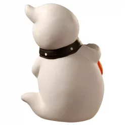 This hollowed pumpkin decoration is constructed of molded plastic and lit with battery operated LED lights. In the foreground of the opening is a spooky black shadow graveyard scene, in the background are floating hologram jack-o-lanterns that give off a 3D effect as you move around the piece. The backside has a hanger hole for wall display ease.