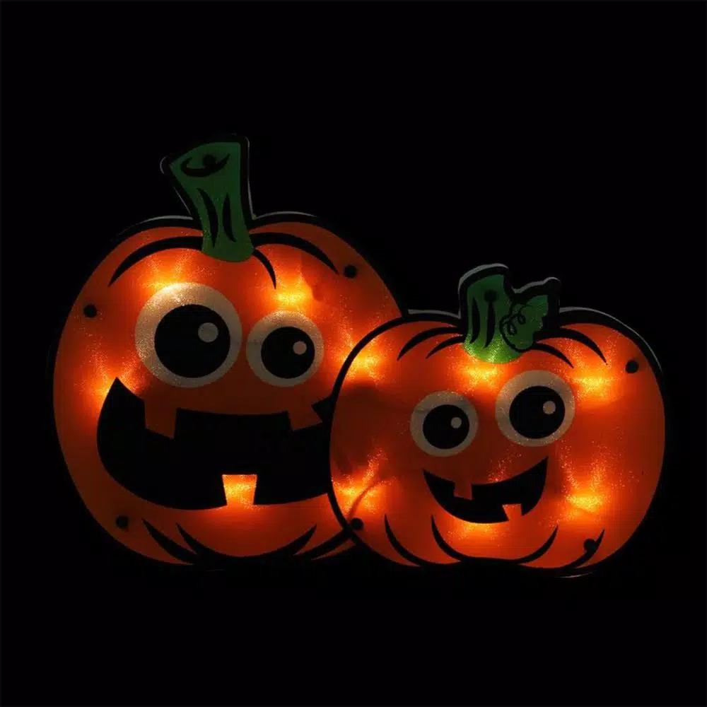 Add this decoration to your window and light up the night with a jack-o-lantern pumpkin couple. They are pre-lit with a total of 10 clear lights. The 1-sided design is a great addition to your window decor, indoor or outdoor.