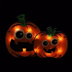 Itβs the spookiest time of the year. Make sure your Halloween decorations are the talk of the neighborhood this year. These pathway markers are perfect for leading trick-or-treaters to your front door. Features: Color: clear bulbs/black wire. Total number of bulbs: 3. Bulb size: C7 flickering. Spacing between each lantern: 15.5 in. Lighted length: 3 ft. Total length: 4.5 ft. 11.5 in. black lead cord. 6.25 in. tail cord. Additional Product Features: Comes with 3 black ground stakes. Contains end-to-end connectors which allows you to connect multiple sets together (not to exceed 210-Watt). UL listed for indoor or outdoor use. Wire gauge: 22-Gauge. 120-Volt 60 Hz 0.08 Amp and 9.6-Watt. Overall dimensions: 16.5 in. H. Pumpkins: 7.25 in. H x 5.25 in. W x 3.75 in. D. Ground stakes: 11.25 in. H. Material(s): plastic/glass bulbs/wire.