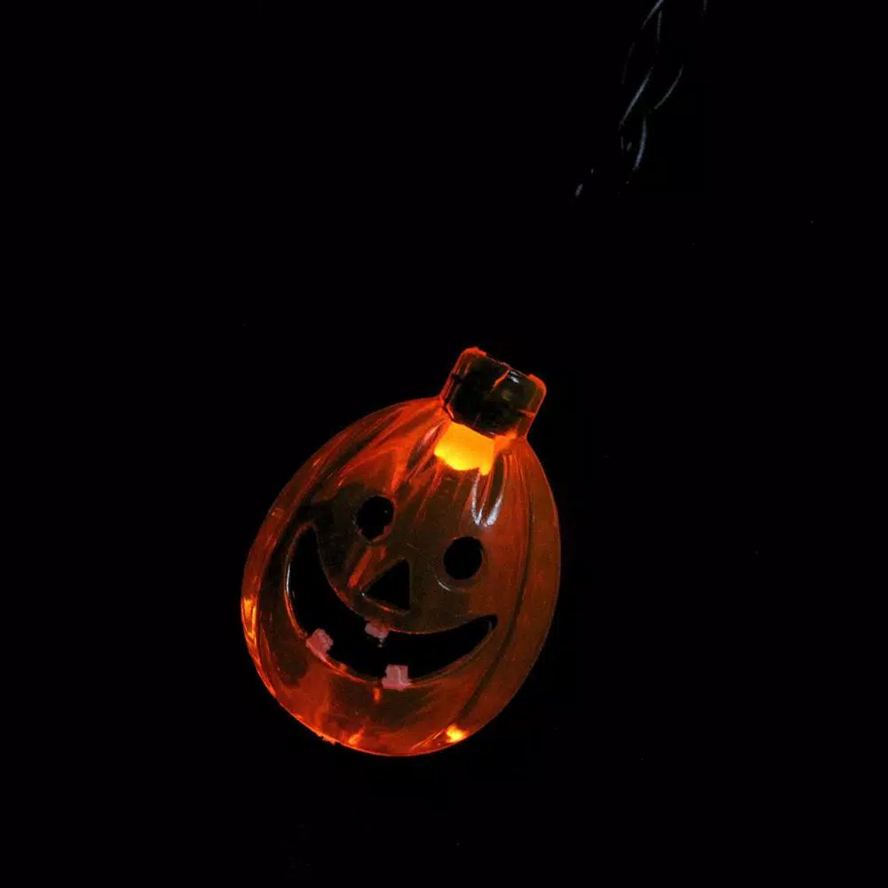 This string of lights is a perfect choice to enhance your Halloween decor. Orange jack-o-lantern light covers are spaced along the black wire and feature a 2-function switch for steady-on or twinkle effect. The LED bulbs use 90% less energy than normal bulbs.