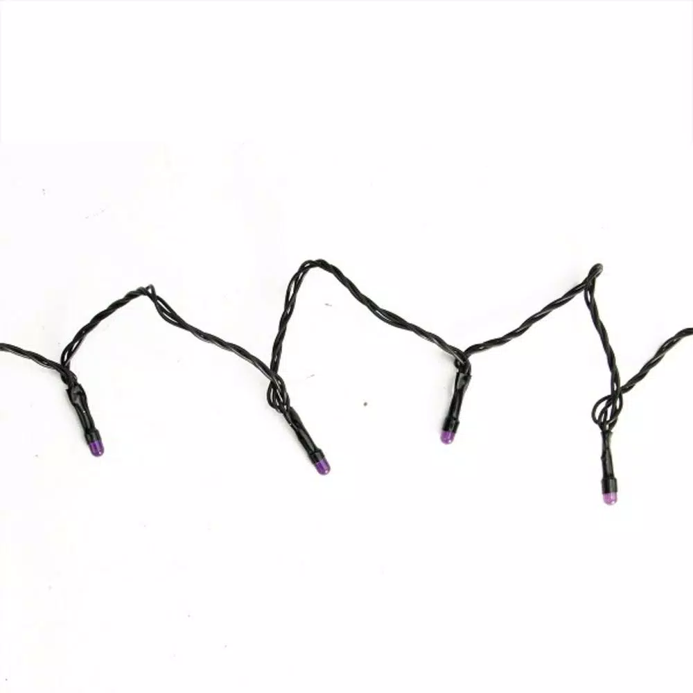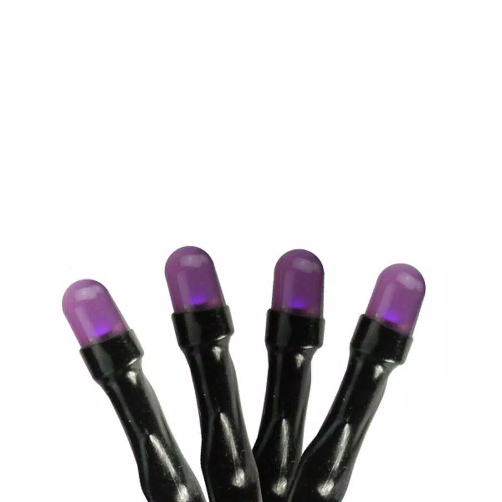 This string of lights is a perfect choice to enhance your Halloween decor. Purple bulbs are spaced along the black wire and feature a 2-function switch for steady-on or twinkle effect. The LED bulbs use 90% less energy than normal bulbs.