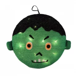 This small Jack-O-Lantern will be the perfect addition to your Halloween decor. Itβs weathered face will fit into any scary scene. Use it to light the way in your haunted house or add to tabletops or mantles for a soft glow. Product Features: Pre-lit with 10 warm clear LED light. Warm clear also known as warm white has a soft natural incandescent glow similar to candlelight. Bulb size: micro-bulbs. Front has a weathered wood design. Back is made of orange wood. Micro bulbs illuminate off the orange background. Jack-O-Lantern has a smiling face cutout. Topped with a weathered leaf design. Cream felt fabric sides. 1 sided design. Additional Product Features: LED lights use 90% less energy. Super bright bulbs. Steady burning bulbs. Requires 2 AA size batteries β not included. Convenient on/off switch on battery pack. For indoor use β if using outdoors place under a covered area. Non-replaceable bulbs. Cannot be connected with other lighted items. Dimensions: 9.5 in. H x 6 in. W x 2.5 in. D. Material(s): wood/felt/plastic/wire/metal.