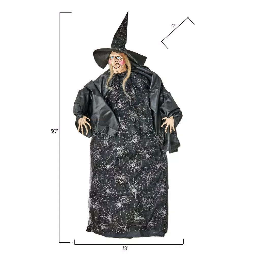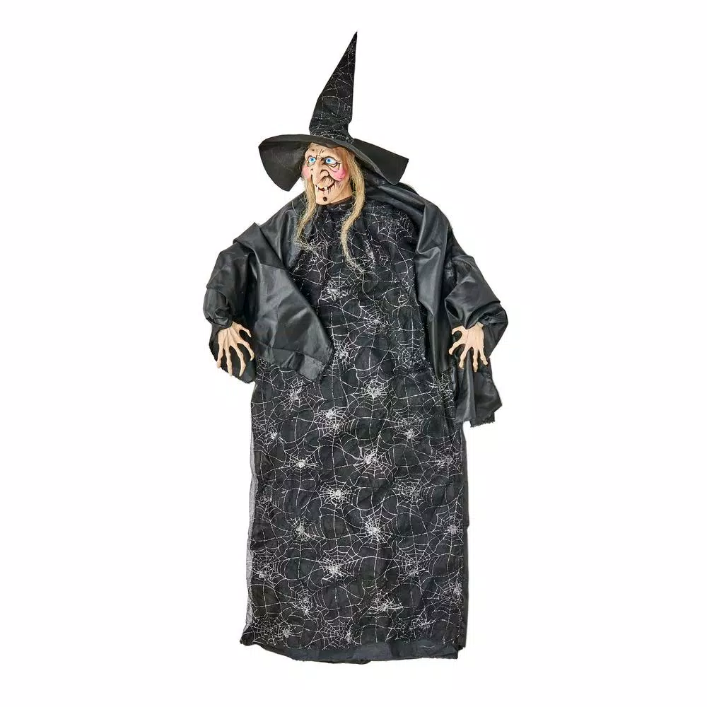 Welcome trick or treaters the right way with this hanging witch. The arms are wired to position as you like, perfect accent to any Halloween decoration. The witch is lightweight and will blow through the wind.